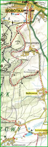 Droga do Sobótki jest prosta - mijamy jedną większą miejscowość - Rogów Sobocki, przed nami dumnie wznosi się góra Ślęża i już za chwilę jesteśmy w miasteczku. Przez Sobótkę przejeżdżamy na wprost - przez jedno główne skrzyżowanie, gdzie zresztą mamy pierwszeństwo. Jedziemy cały czas prosto mając po lewej stronie z tyłu teren płaski jak stół, aż dojedziemy do miejscowości Strzegomiany. Tu powolutku, bo są dwa ostre zakręty. Opuszczamy Strzegomiany, mijamy po prawej stronie Rezerwat Archeologiczny gdzie można obejrzeć wykopaliska w miejscu dawnego grodu i kilka odbudowanyh "kurnych chat". Niejednemu się taka marzy. Jedziemy dalej i mijamy miejscowość Będkowice, za którą droga się rozwidla. Nie skręcamy do Sulistrowic! My jedziemy do Sulistrowiczek czyli prosto, w kierunku na Wiry lub Sady. Jeszcze ok. 1km i już po lewej stronie w dole powinno być widać zalew. Zjeżdżamy wąską drogą w dół i przed zaporą po prawej stronie widzimy ośrodek, gdzie będziemy imprezować. Jesteśmy na miejscu !!!